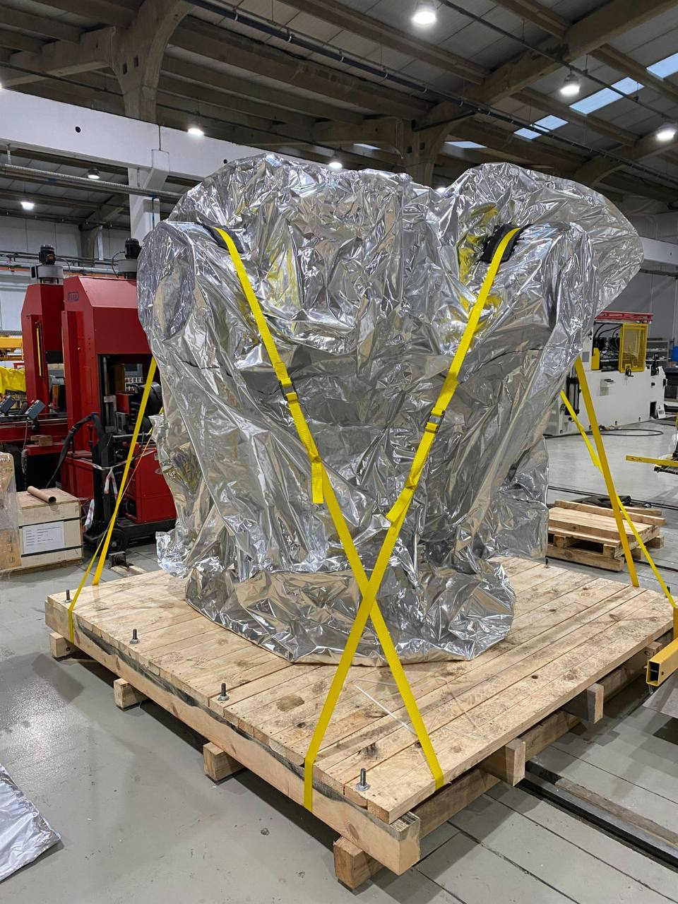 14 Mart 2026 tarihinde 9 parçalık, yaklaşık 25 tonluk yük için 4 saatlik shrink wrap paketleme operasyonu.