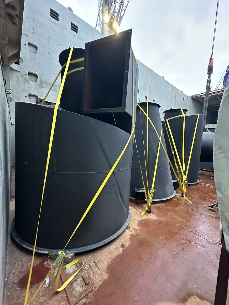 6 adet, her biri 65 tonluk trafonun Gemport sahasında kısa süreli manevra penceresinde gemiye emniyetli sabitlenmesi.