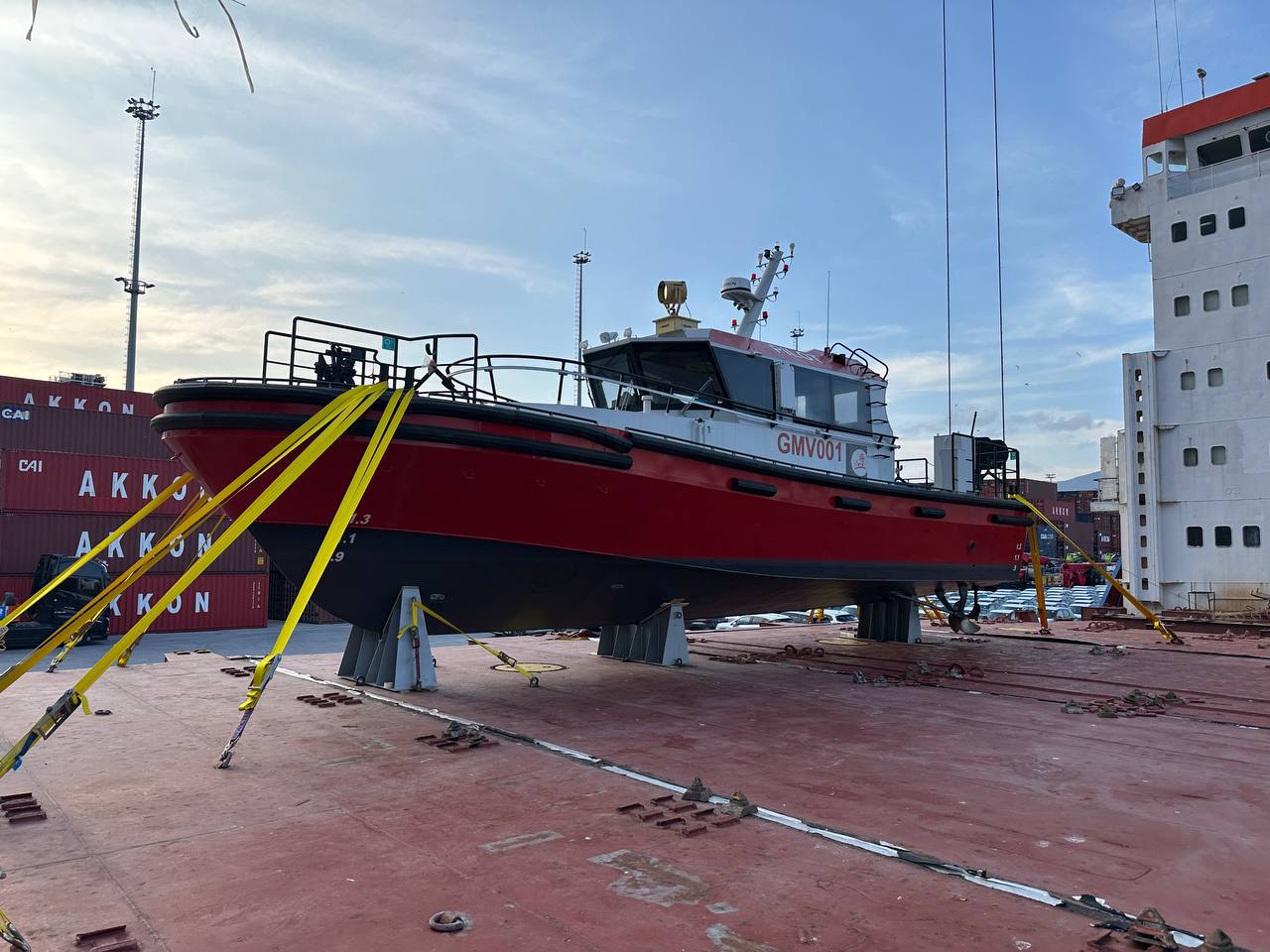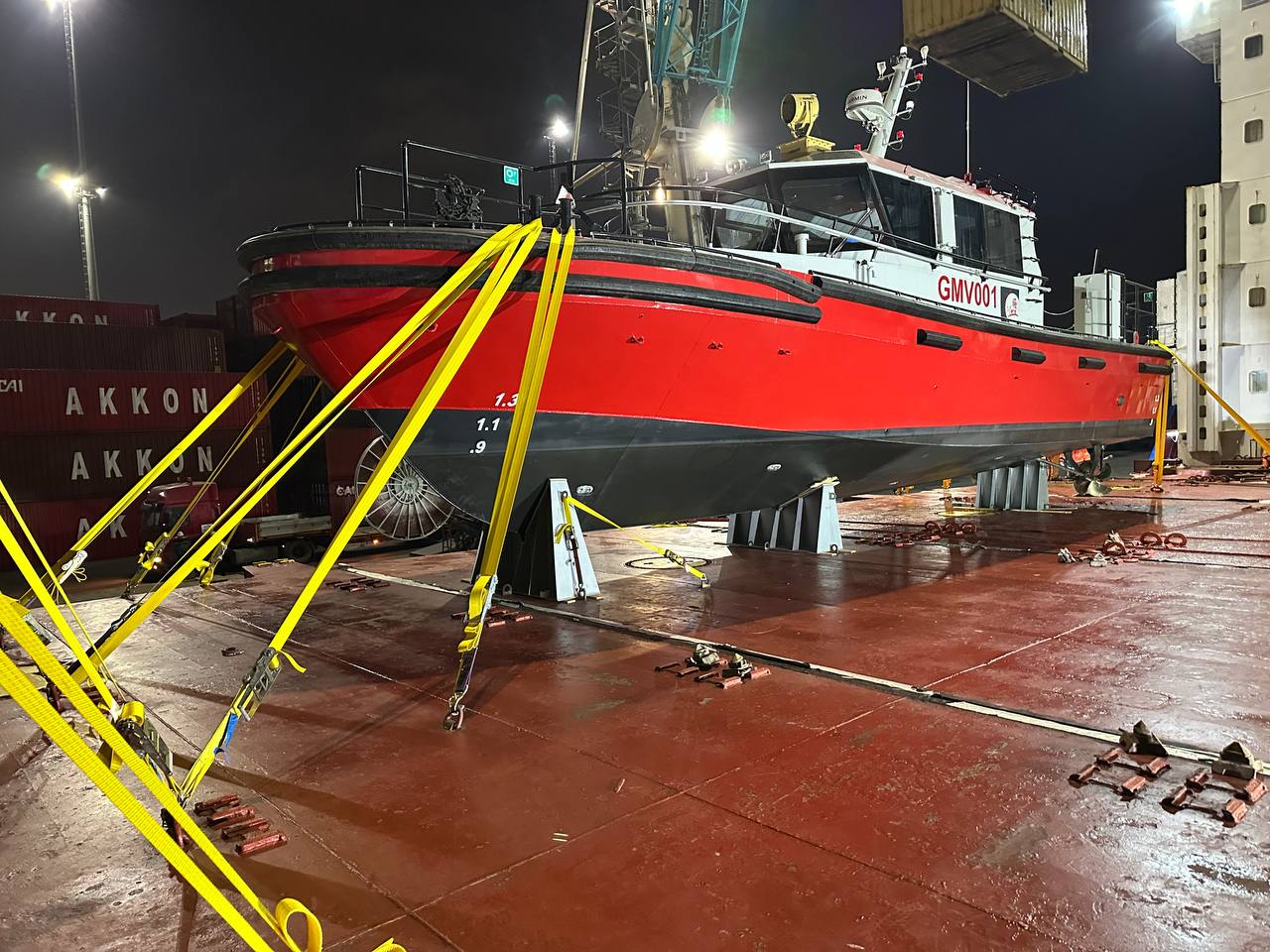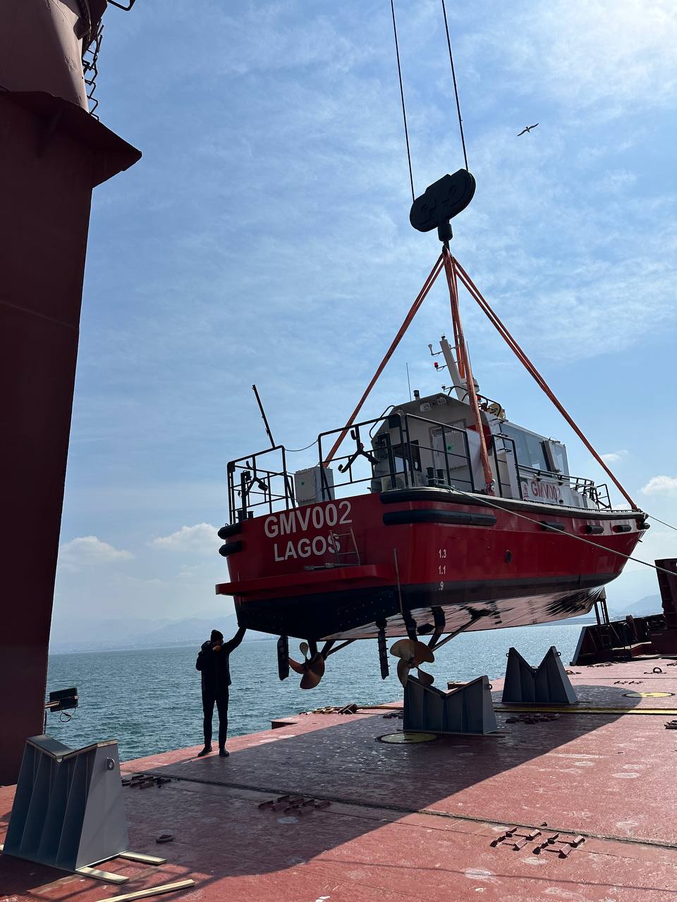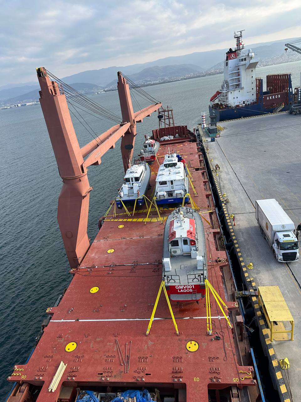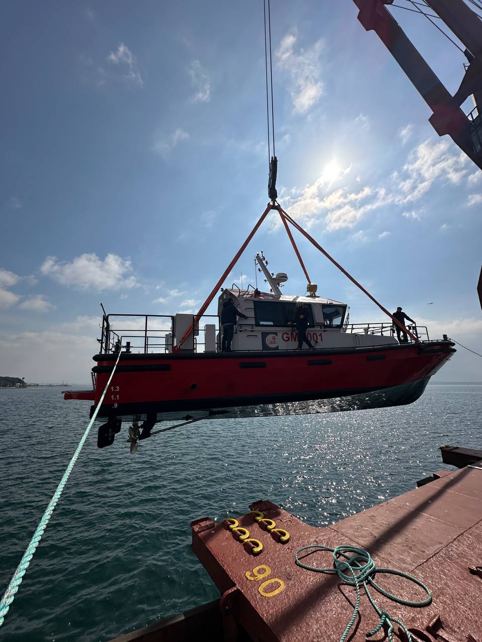 6 Mart 2026 tarihinde 67 tonluk tekne ve 49 tonluk yardımcı parçanın güvenli sevkiyat için lashing operasyonu.