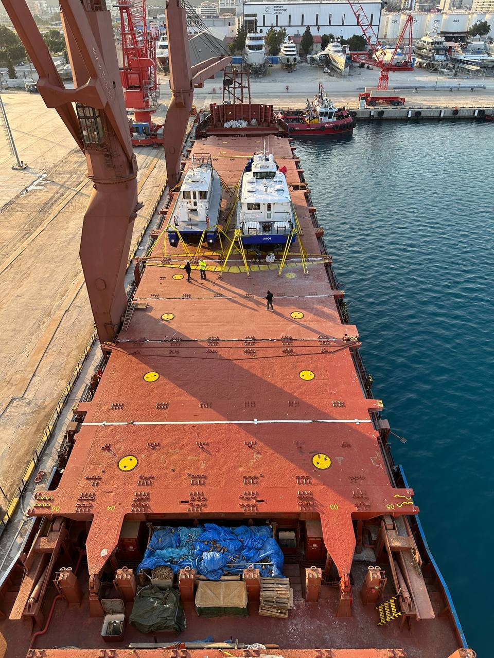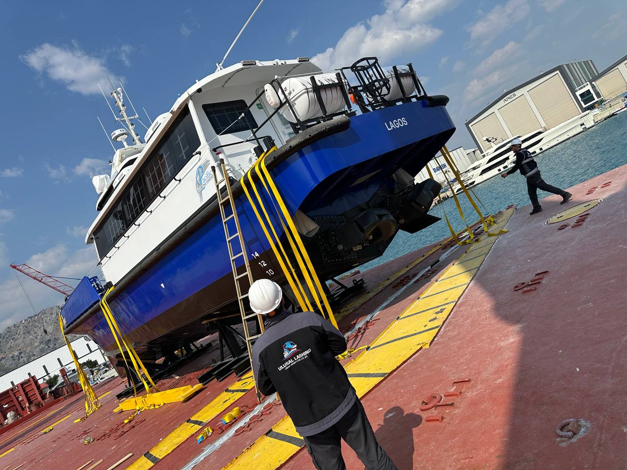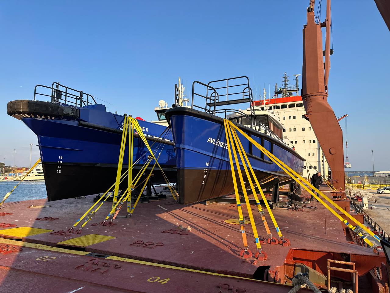 Farklı tonajdaki iki deniz aracının aynı operasyon penceresinde yüklenmesi, denge dağılımının doğru kurulmasını kritik hale getirdi. Hassas yüzeyli üst yapı elemanları için temas ve baskı noktaları özel olarak korumaya alındı.