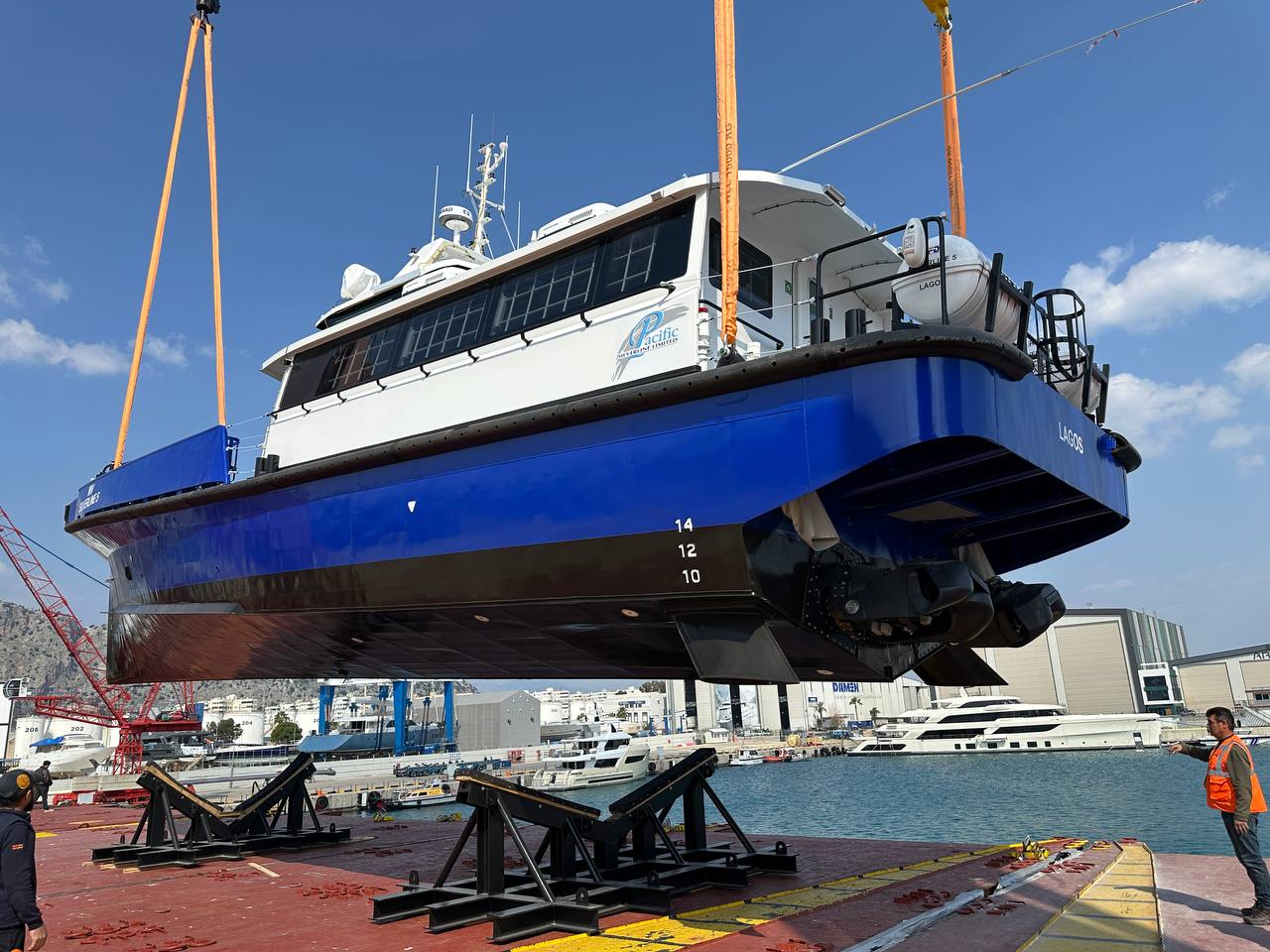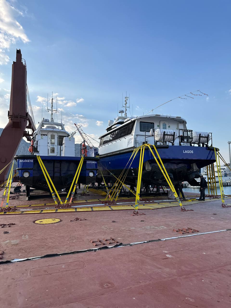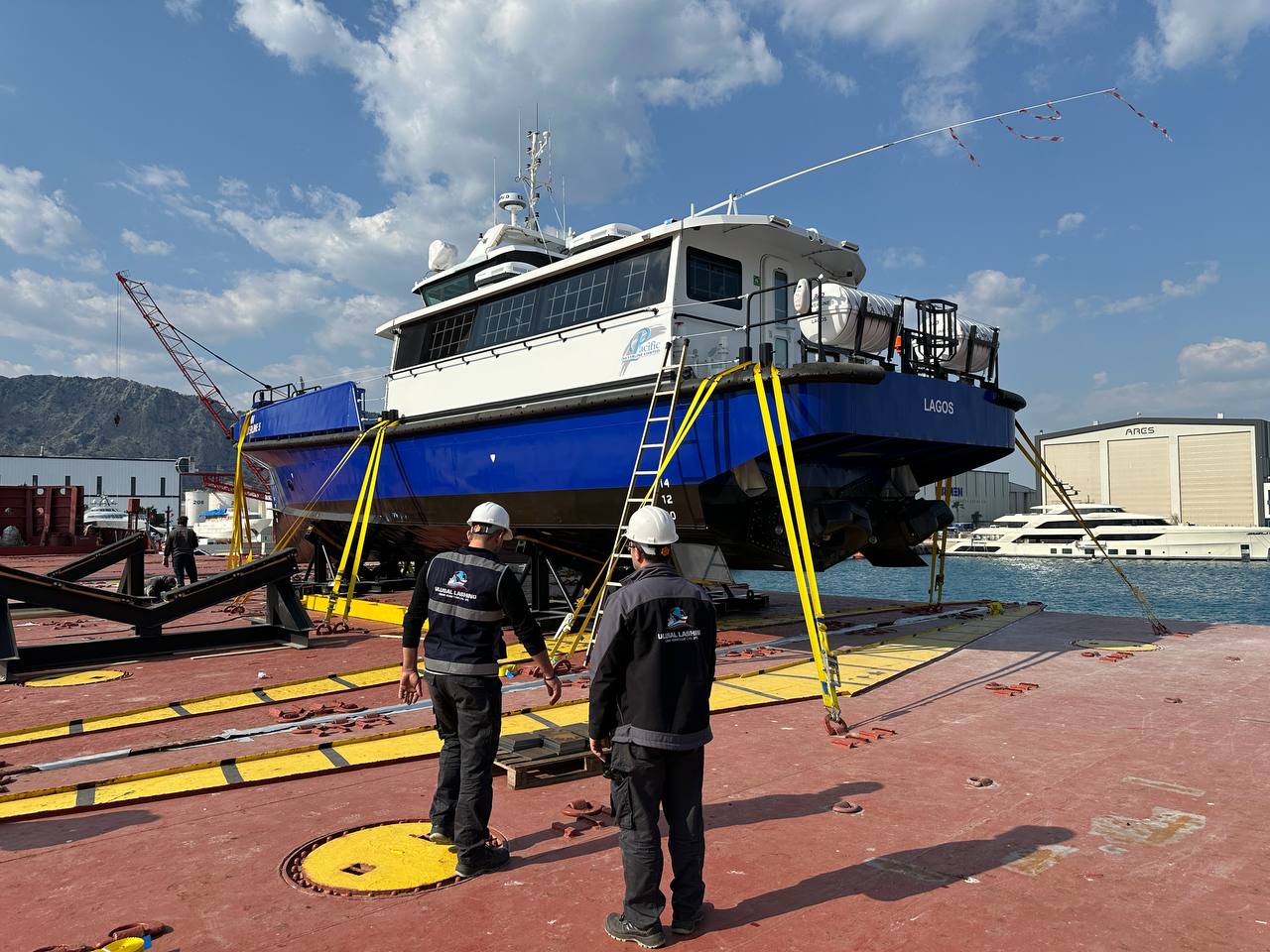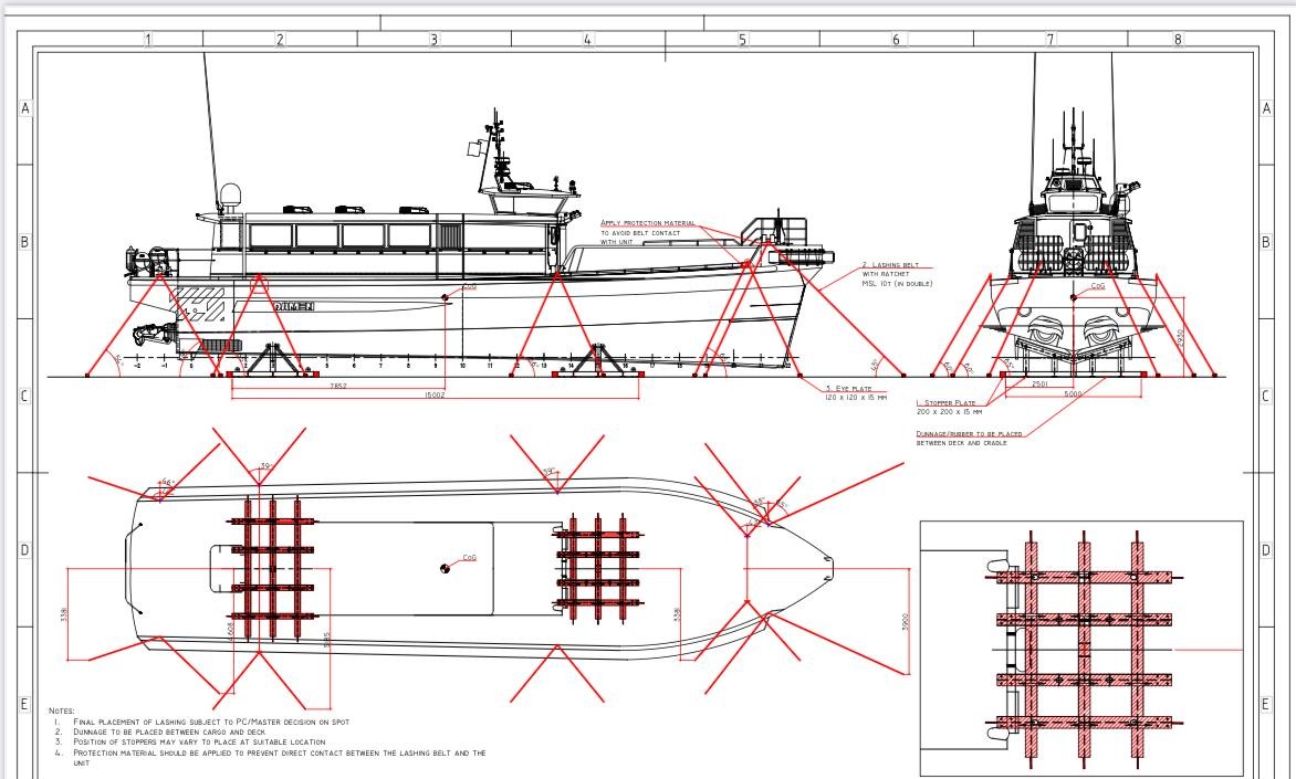 Farklı tonajdaki iki deniz aracının aynı operasyon penceresinde yüklenmesi, denge dağılımının doğru kurulmasını kritik hale getirdi. Hassas yüzeyli üst yapı elemanları için temas ve baskı noktaları özel olarak korumaya alındı.
